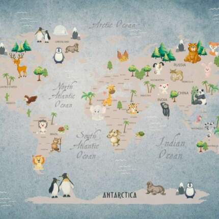 Map World for kids rooms Wall Mural Design Brown Grey 194516489
