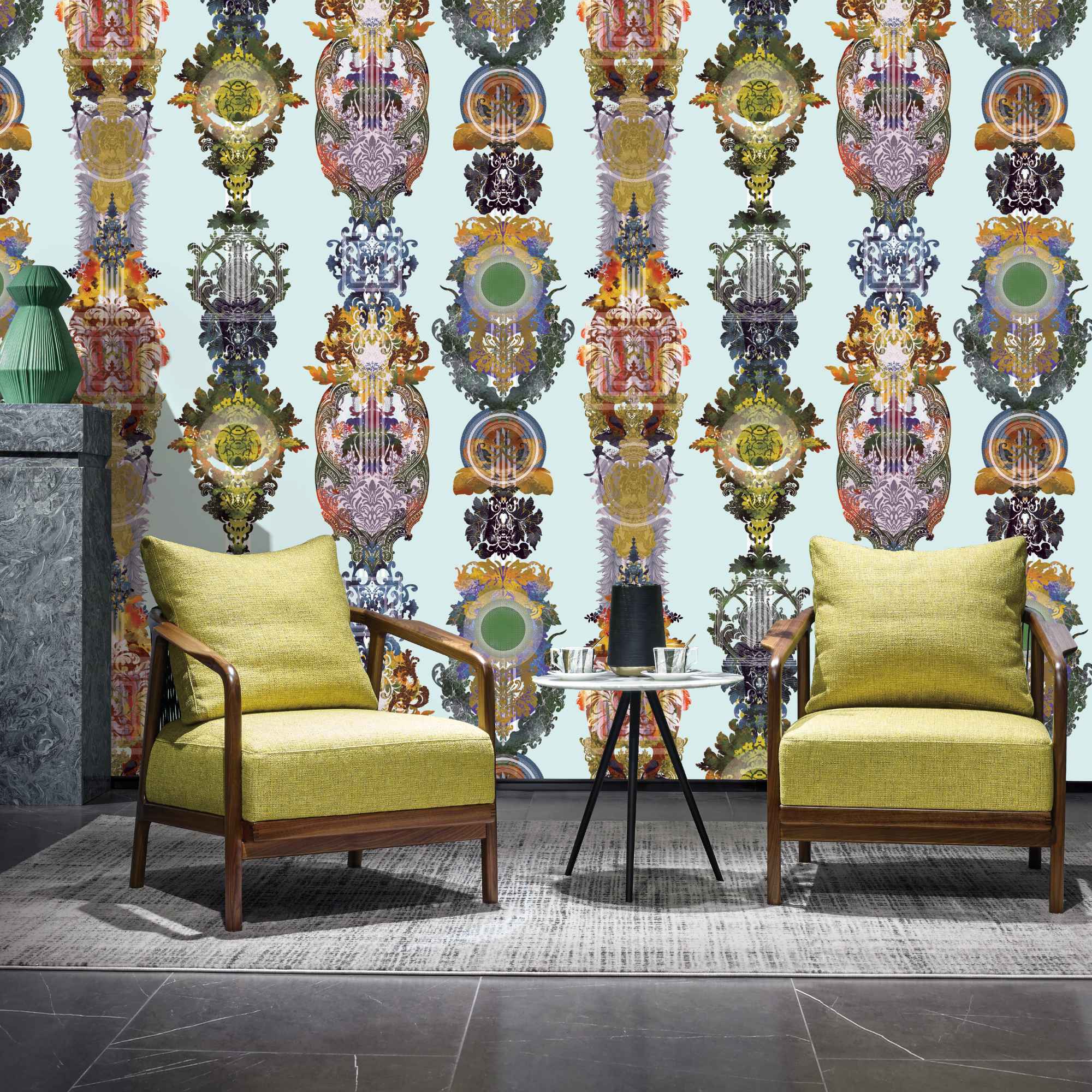 Introducing the HERA6 collection, where the serene beauty of nature meets interior elegance. Each design is thoughtfully crafted to bring the calming influence of natural elements into your home. The tropical vibes of graceful palm tree silhouettes set a relaxed, exotic tone, while intricate leaf designs invite the freshness of the outdoors inside, creating a tranquil and vital atmosphere. Stone-inspired patterns bring earthy, grounding textures that add depth and timeless charm to any space. Plaster-inspired wallpapers offer a sophisticated, artisanal look with their subtle textures and neutral tones, providing an elegant yet understated backdrop. For those seeking a touch of romance, floral patterns celebrate the delicate beauty of blossoms, infusing your interiors with color and grace. Finally, fabric-inspired designs bring the soft, natural feel of linen, creating a cozy, inviting ambiance perfect for relaxing and unwinding. The HERA6 collection offers a harmonious blend of style and serenity for any room in your home.