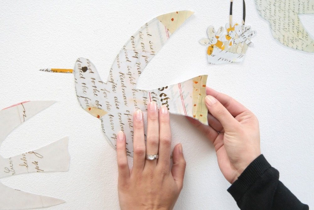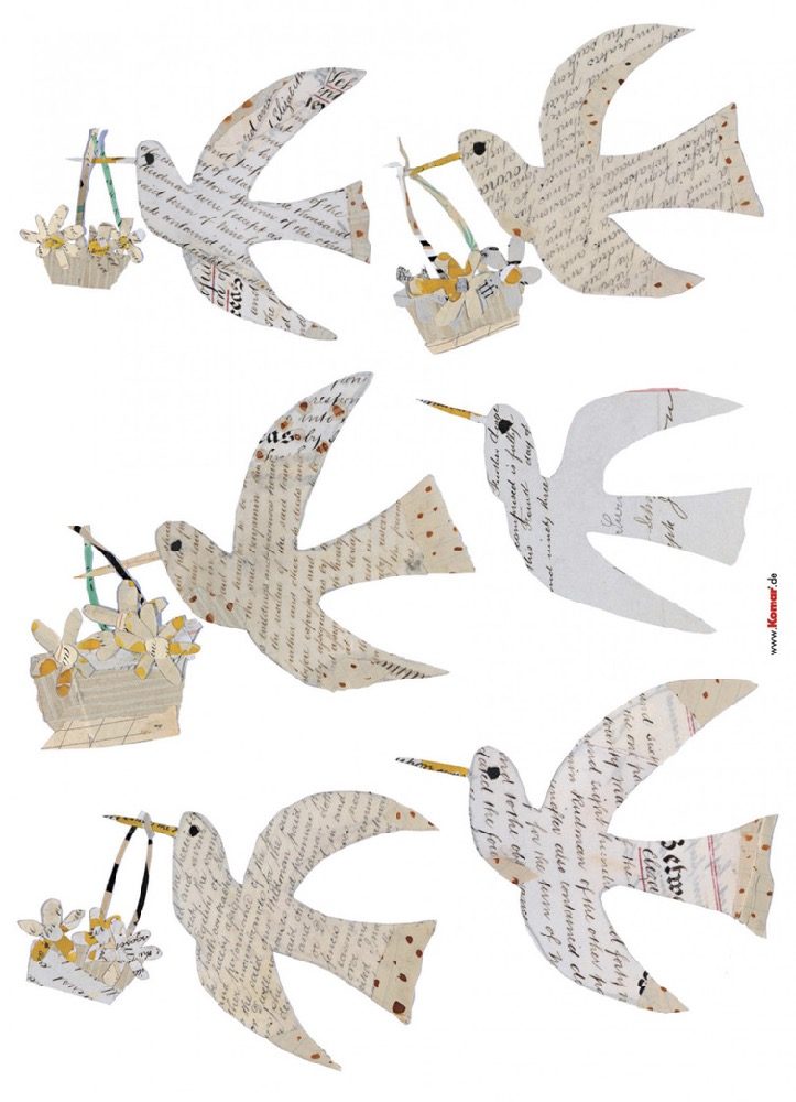 Carrier pigeons as ambassadors of romance deco sticker. Large formated, self-adhesive Deco-Stickers which can be easily placed and repositioned, turn wall decoration into child play!